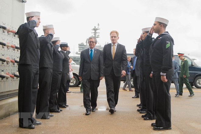 Đại sứ Phạm Quang Vinh đã thăm tàu sân bay USS George H.W. Bush (CVN 77). Thứ trưởng Hải quân Mỹ Thomas Modly, Chuẩn Đô đốc Roy Kelly, Tư lệnh Lực lượng Không quân Đại Tây Dương và Đại tá Chris Hill, sỹ quan chỉ huy tàu sân bay CVN 77 đã đón tiếp và chào mừng đoàn thăm tàu cùng đội tiêu binh danh dự.