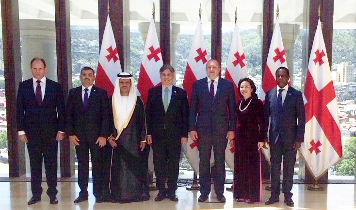 Tổng thống Giorgi Margvelashvili chụp ảnh kỷ niệm cùng Đại sứ Đoàn Thị Xuân Hiền và Đại sứ các nước sau Sau Lễ trình Quốc thư