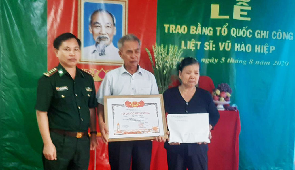 Phó Chính ủy Bộ Chỉ huy Bộ đội Biên phòng tỉnh - Đại tá Nguyễn Minh Phương ghi nhận, trân trọng và cảm ơn sự cống hiến của đồng chí Vũ Hào Hiệp trong công cuộc xây dựng và bảo vệ Tổ quốc. Đồng thời, khẳng định việc trao Bằng Tổ quốc ghi công là một trong những việc làm thiết thực nhằm tri ân những người đã cống hiến xương máu cho quê hương, dân tộc. Từ đó, hy vọng gia đình cố gắng nén nỗi đau, vượt qua khó khăn, tiếp tục phát huy truyền thống cách mạng của gia đình./.