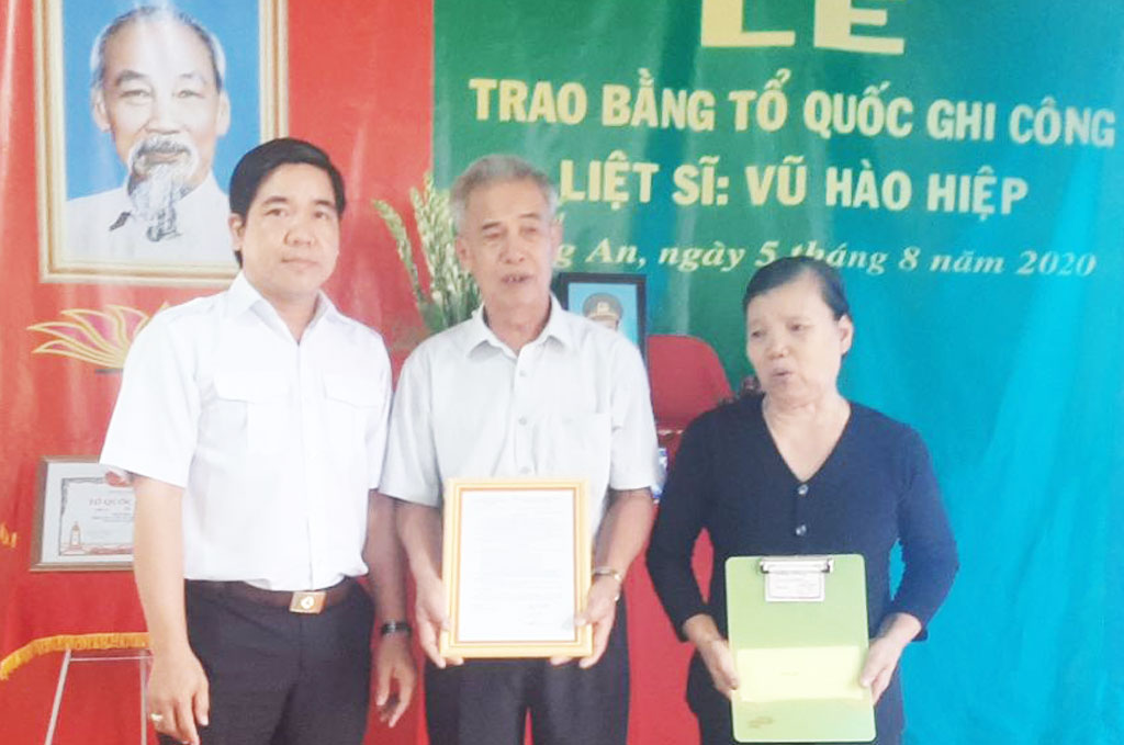 Trao Bằng Tổ quốc ghi công cho thân nhân đồng chí Vũ Hào Hiệp