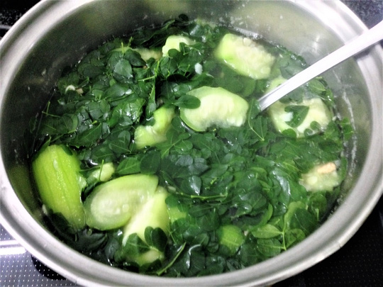 Nồi canh rau chùm ngây nấu cùng mướp