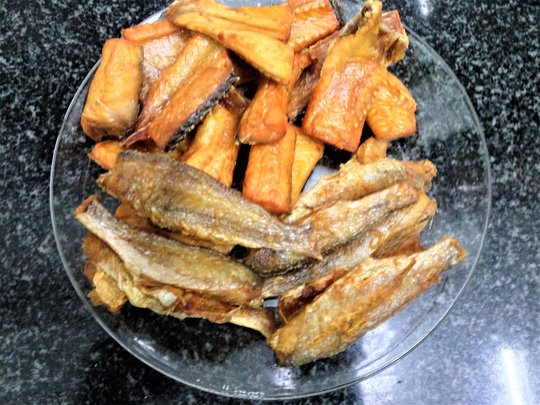 Đĩa khô cá lóc và cá lù đù chiên giòn