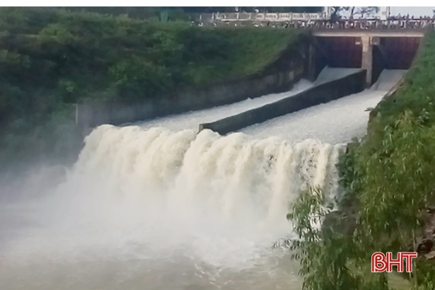 | Sáng 19/10, hồ Kẻ Gỗ đã tăng lưu lượng xả tràn. (Ảnh: baohatinh.vn) |