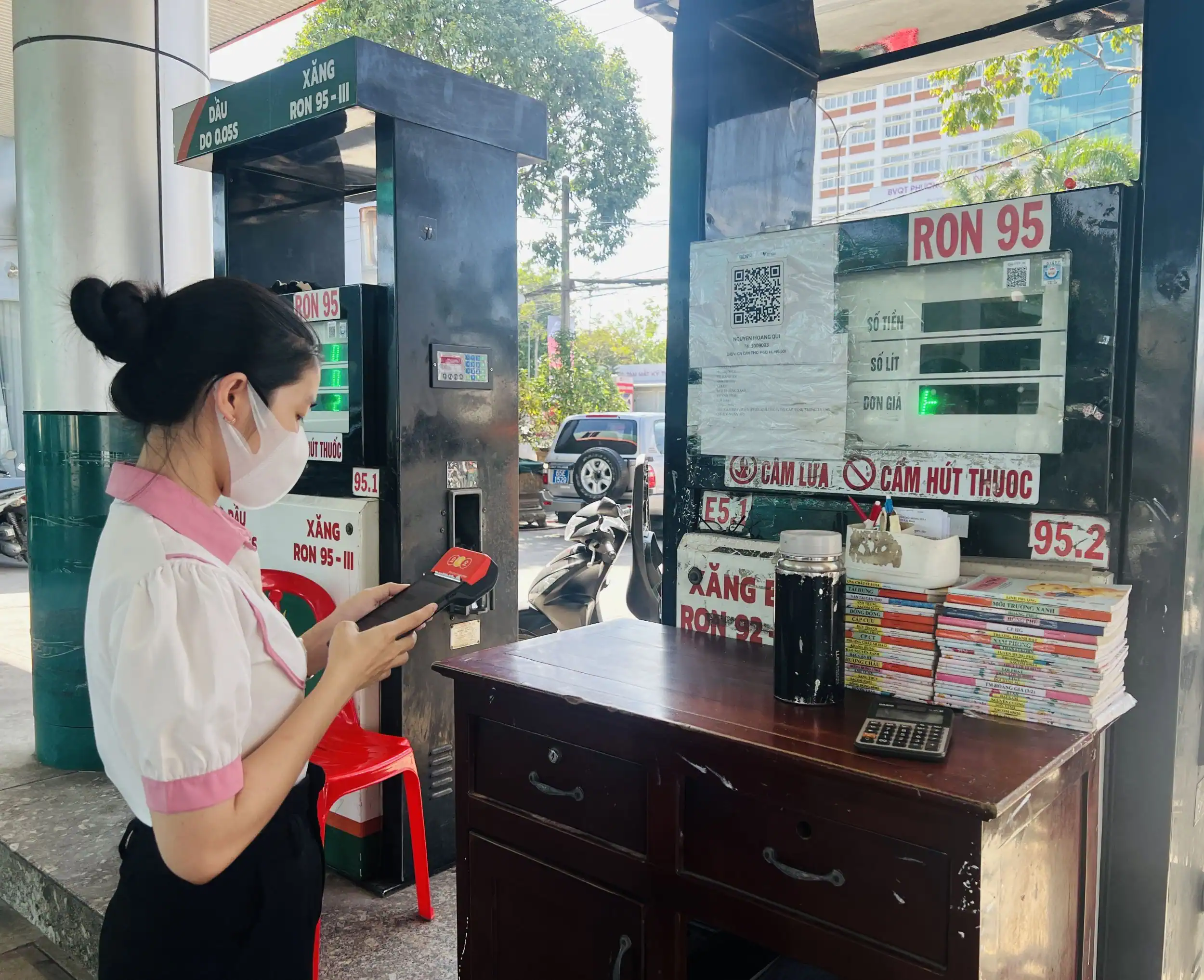 Nhân viên tại một cửa hàng của Petro Hoàng Yến xuất HĐĐT sau mỗi lần bán qua máy POS cho khách hàng.