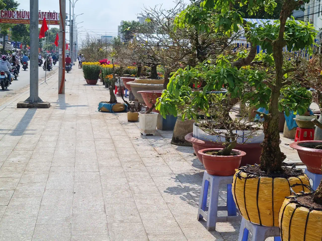 Hoa, kiểng bắt đầu được người dân bày bán trên vỉa hè quận Thốt Nốt.