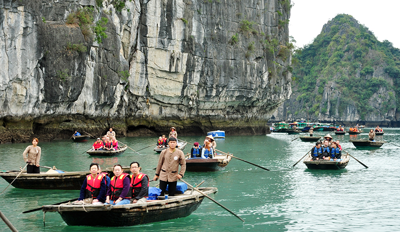 | Du khách tham quan vịnh Hạ Long. (Ảnh: Báo Quảng Ninh) |