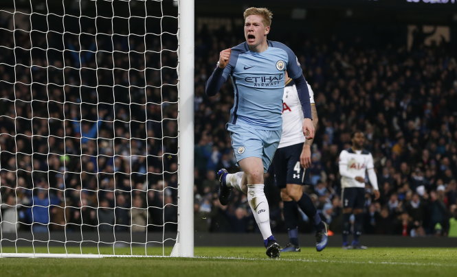 De Bruyne ăn mừng bàn nâng tỉ số lên 2-0 cho M.C. Ảnh: Reuters