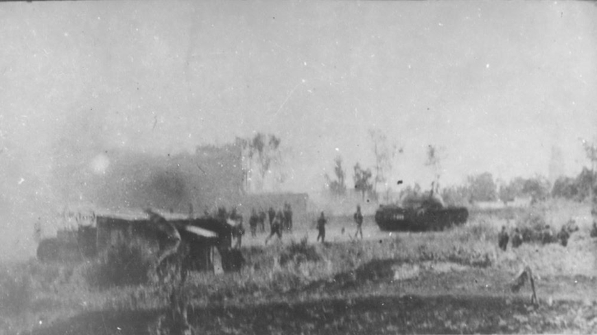 | Lực lượng của Quân đoàn 4 tiến vào Trảng Bom, Biên Hòa, tháng 4-1975. (Ảnh tư liệu) |