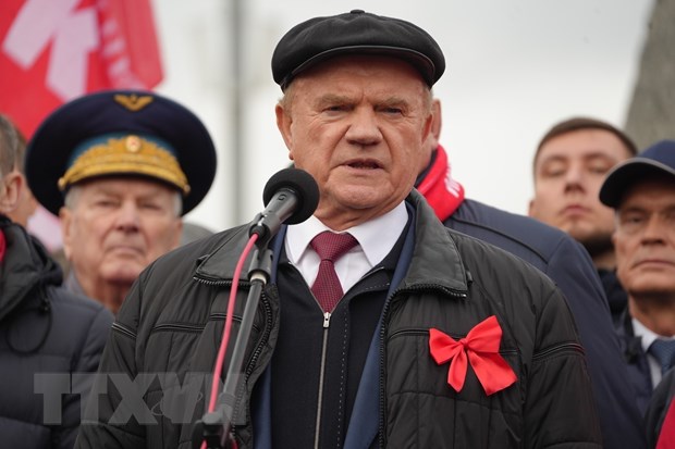 Chủ tịch Đảng Cộng sản Liên Bang Nga Gennady Ziuganov phát biểu tại Lễ míttinh. (Ảnh: TTXVN)