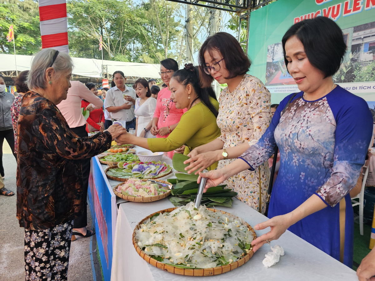 Quầy bánh phục vụ miễn phí cho người dân đến dự Lễ kỷ niệm 155 năm Ngày hy sinh của Anh hùng dân tộc Nguyễn Trung Trực tại Khu di tích lịch sử khu vực Xóm Nghề
