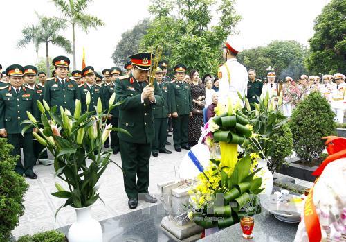 Tại Nghĩa trang Mai Dịch (thành phố Hà Nội), trước Đài tưởng niệm, Đoàn đại biểu đã dâng hương, đặt vòng hoa kính viếng hương hồn và tưởng nhớ các anh hùng liệt sĩ, các vị tiền bối cách mạng của Đảng, Nhà nước; dâng hương, đặt lẵng hoa trên phần mộ đồng chí Đại tướng Văn Tiến Dũng. Đoàn cũng đã dâng hương tại Nhà tưởng niệm đồng chí Đại tướng Văn Tiến Dũng (quận Ba Đình, Hà Nội).