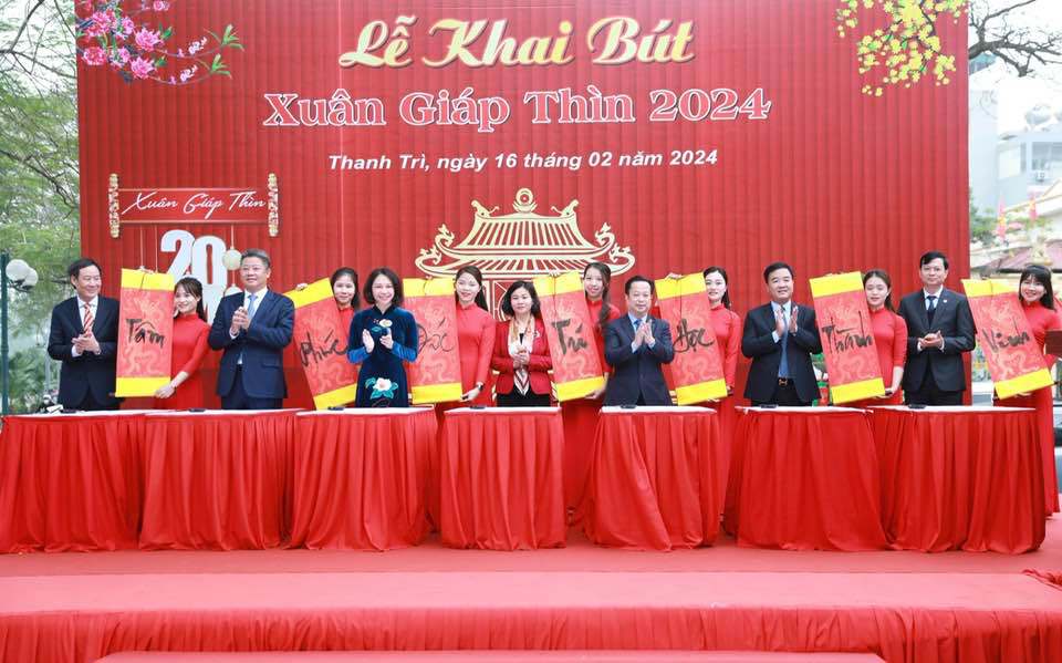 Phát biểu tại buổi lễ, Chủ tịch UBND huyện Thanh Trì Nguyễn Tiến Cường cho biết, khai bút đầu xuân là nét đẹp văn hóa dân tộc, là hoạt động có ý nghĩa thiêng liêng, là sự khởi đầu một năm mới mang đậm dấu ấn truyền thống của dân tộc Việt Nam.