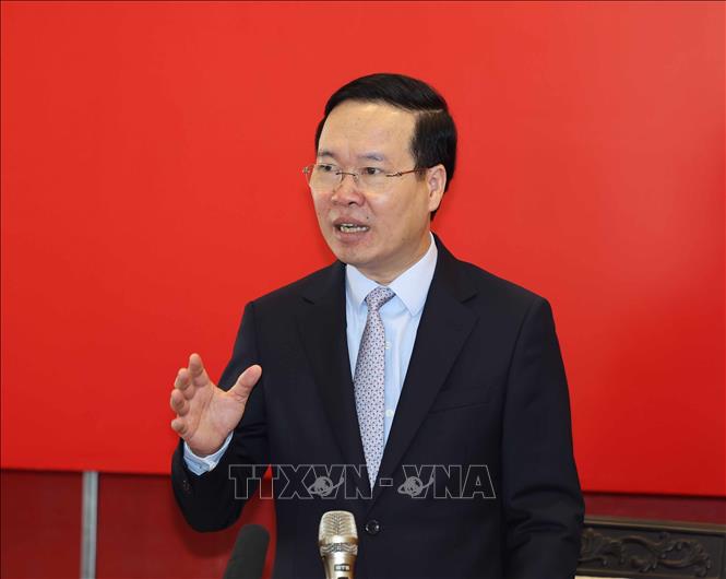 | Chủ tịch nước Võ Văn Thưởng phát biểu tại buổi gặp gỡ. Ảnh: Thống Nhất/TTXVN. |