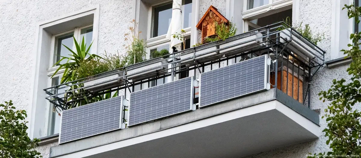 Tấm pin mặt trời được lắp đặt trên ban công của một căn hộ ở thủ đô Berlin (Đức). Ảnh: DW.