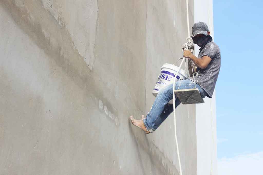 Thợ sơn nước không chỉ biết về sơn và cọ, mà còn phải biết… đu dây "làm xiếc"!