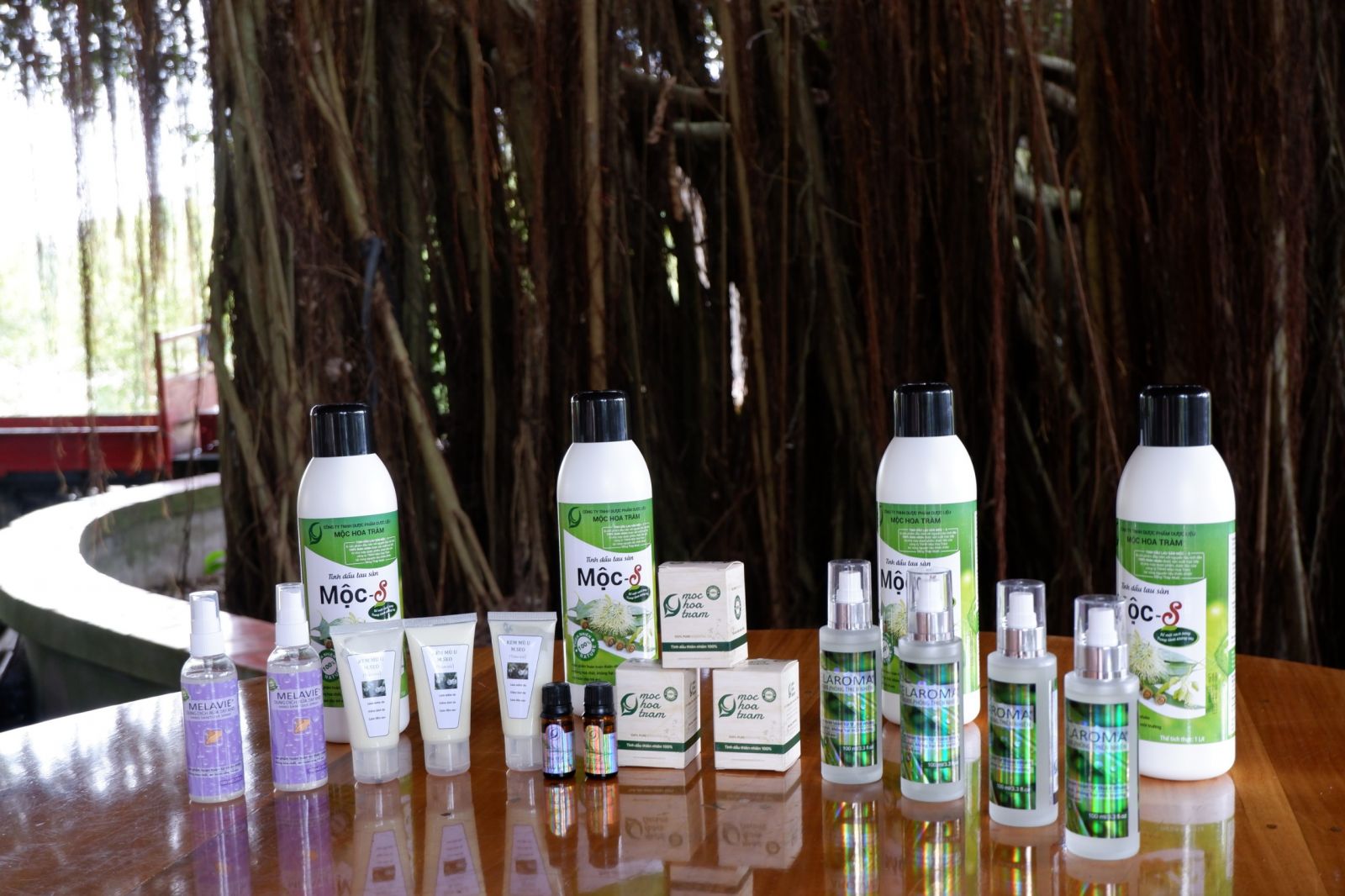 Tại Công ty TNHH Dược phẩm, Dược liệu Mộc Hoa Tràm, tọa lạc khu phố 3, thị trấn Bình Phong Thạnh, huyện Mộc Hóa, tỉnh Long An, đại diện công ty thuyết trình, giới thiệu 6 sản phẩm gồm: tinh dầu xịt phòng MELAROMA; tinh dầu tràm gió Mộc Hóa Việt Nam; tinh dầu lau sàn MỘC S; kem liền sẹo Mù u M.SEO; tinh dầu tràm trà TRA TRA và dung dịch tửa tay khô Melavie.