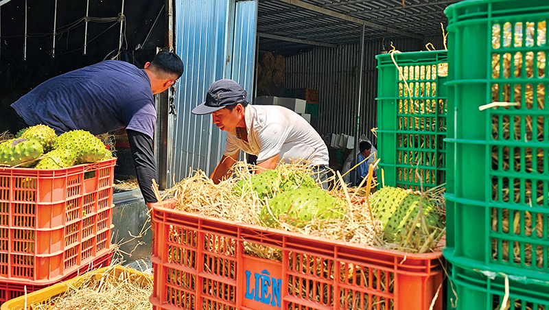 Thu mua mãng cầu xiêm tại một vựa trái cây trên địa bàn phường Thới Long, TP Cần Thơ.