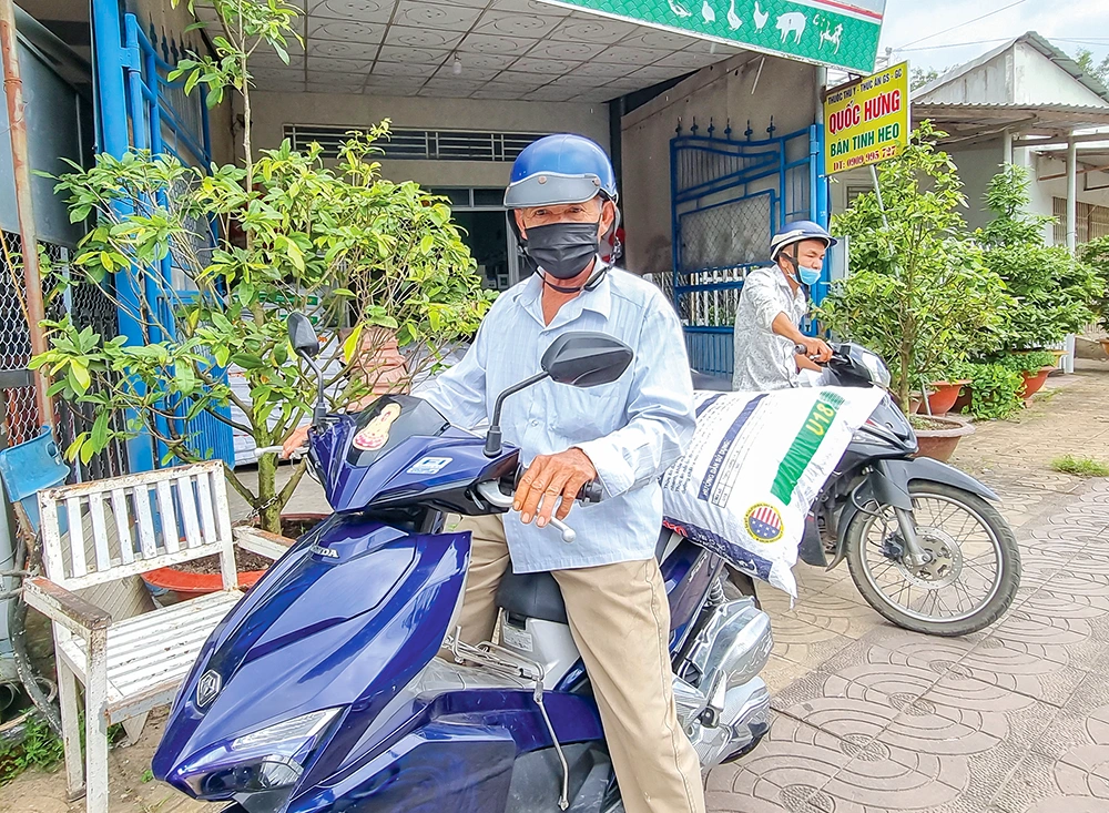 Người dân mua thức ăn chăn nuôi tại một cửa hàng ở xã Thới Lai, TP Cần Thơ.
