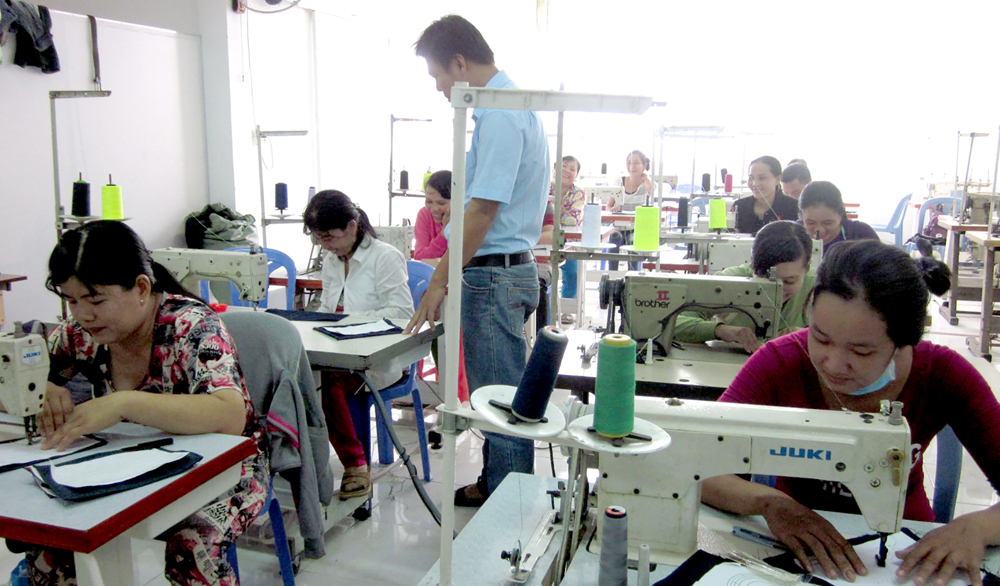 Lao động nữ quận Cái Răng học nghề kỹ thuật may giày da tại Trung tâm Dạy nghề Tây Đô, cung ứng lao động cho Công ty TNHH Taekwang Cần Thơ.