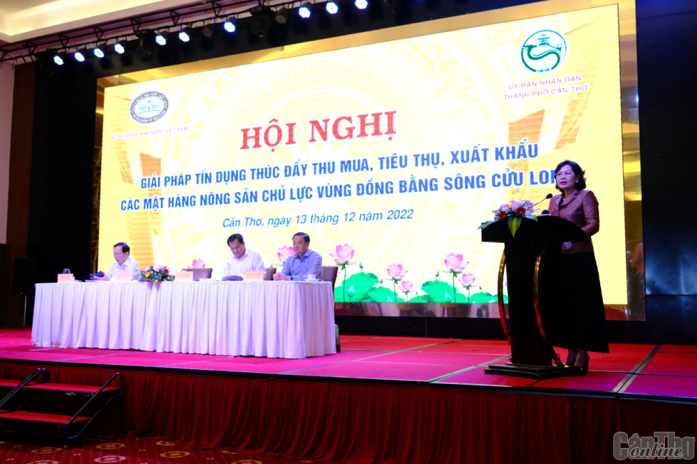 (CT) - Chiều 13-12, tại TP Cần Thơ, Ngân hàng Nhà nước Việt Nam (NHNN) phối hợp với UBND TP Cần Thơ tổ chức hội nghị "Giải pháp tín dụng thúc đẩy thu mua, tiêu thụ, xuất khẩu các mặt hàng nông sản chủ lực vùng ĐBSCL". Thống đốc Ngân hàng Nhà nước Việt Nam Nguyễn Thị Hồng và Bí thư Thành ủy Cần Thơ Lê Quang Mạnh chủ trì hội nghị.
