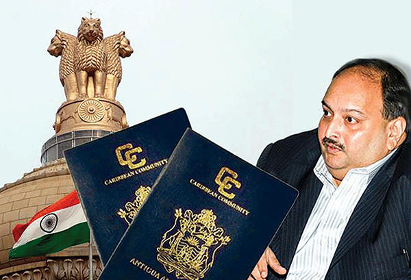 Tỉ phú Ấn Độ Choksi cùng cuốn hộ chiếu Antigua và Barbuda.