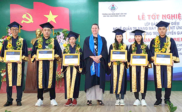 Lễ trao bằng tốt nghiệp cho sinh viên của 2 nghề cấp độ quốc tế, do Trường Cao đẳng Nghề Cần Thơ liên kết với Học viện Chisholm (Úc) đào tạo.
