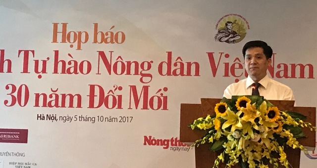 Thông tin này được công bố tại buổi họp báo sáng 5/10 tại Hà Nội giới thiệu về việc công bố 63 nông dân Việt Nam xuất sắc năm 2017 cùng 24 gương mặt “30 năm đổi mới” và Chương trình truyền hình trực tiếp “Tự hào Nông dân Việt Nam – 30 năm đổi mới”.