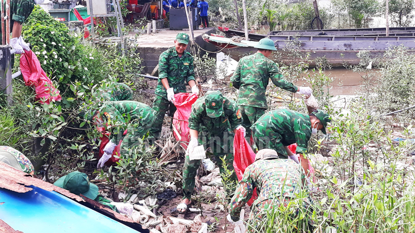 “Chung tay làm sạch biển”. Tác giả: THẠCH SOM, Bộ đội Biên phòng Trà Vinh.