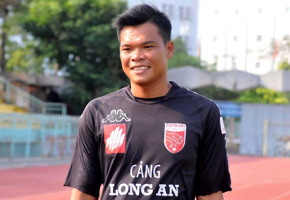 Tiền đạo Đỗ Thanh Sang, người ghi bàn mở tỷ số cho Long An ở phút thứ 7, trận đấu bù vòng 2 giữa Hà Nội B và Long An trên sân Hàng Đẫy chiều ngày 08/5/2018. Ảnh: Anh Tuấn