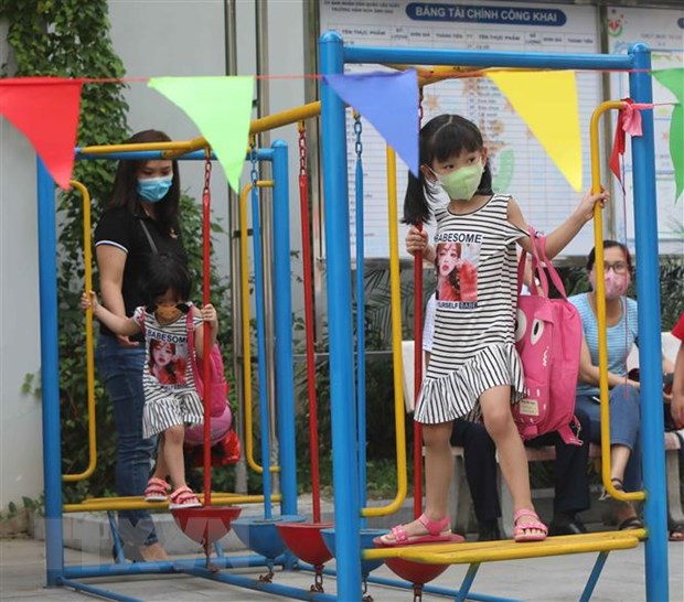 Trẻ em buộc phải ở trong nhà khi các công viên đóng cửa phòng dịch. (Ảnh: An Đăng/TTXVN)