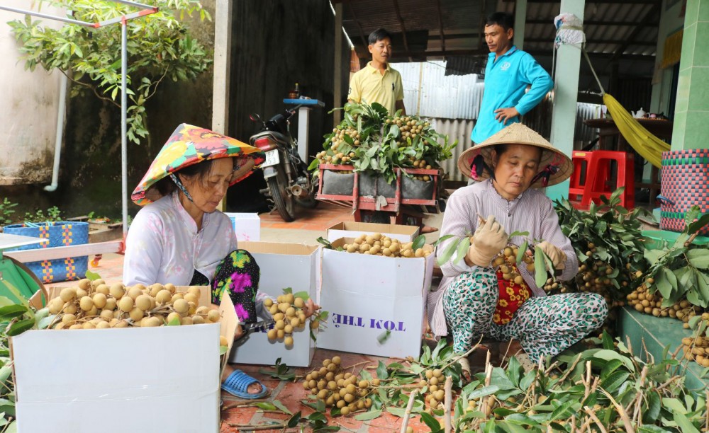 Những năm trước, giá nhãn Ido thường xuyên duy trì ở mức từ 20.000 đồng/kg trở lên, nhưng hiện nay giá đã giảm. Trong ảnh: Thu hoạch nhãn Ido ở quận Ô Môn, TP Cần Thơ.
