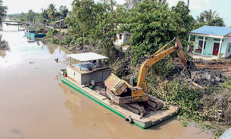 Huyện Vĩnh Thạnh (TP Cần Thơ) nạo vét kênh rạch, khai thông dòng chảy, đảm bảo nước ngọt sản xuất lúa. Ảnh: HÀ VĂN