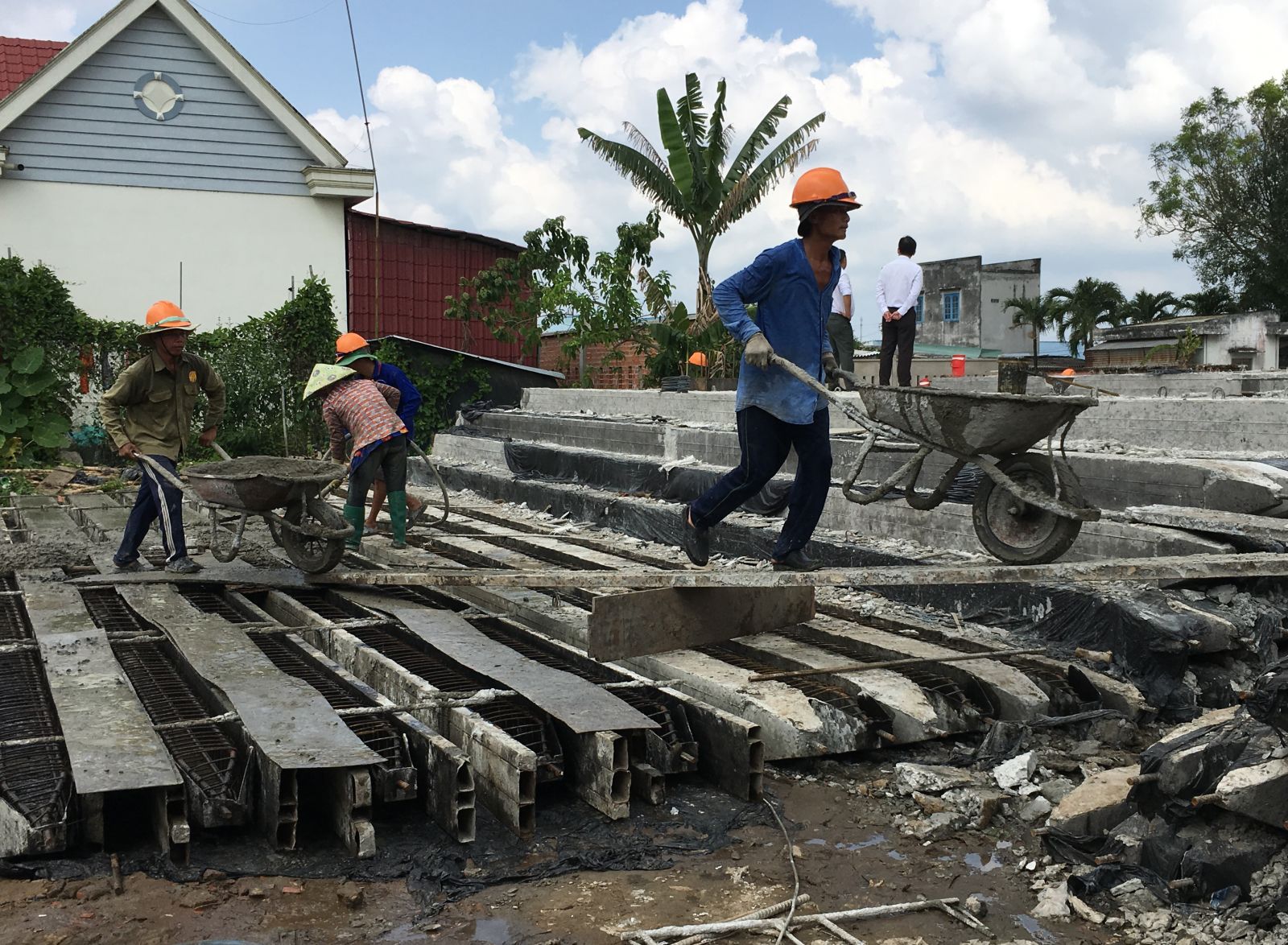 Công nhân thi công công trình Trung tâm Y tế huyện Châu Thành
