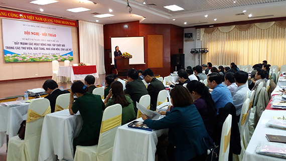Phát biểu khai mạc Hội nghị - Hội thảo, Thứ trưởng Đặng Thị Bích Liên cho biết: Đề án “Đẩy mạnh các hoạt động học tập suốt đời trong các thư viện, bảo tàng, nhà văn hóa, câu lạc bộ” là một đề án nhánh của Đề án “Xây dựng xã hội học tập giai đoạn 2012-2020” được Thủ tướng Chính phủ phê duyệt tại Quyết định 208/QĐ-TTg ngày 27/01/2014. Để triển khai thực hiện Đề án trên, Bộ VHTTDL đã ban hành Quyết định số 2549/QĐ-BVHTTDL năm 2014 phê duyệt Kế hoạch triển khai thực hiện Đề án “Đẩy mạnh các hoạt động học tập suốt đời trong các thư viện, bảo tàng, nhà văn hóa, câu lạc bộ giai đoạn 2014-2020”.