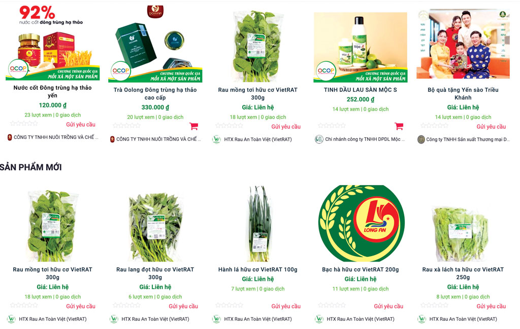 Song song đó, ngành đôn đốc các doanh nghiệp quản lý sàn giao dịch điện tử https://postmart.vn, https://voso.vn hỗ trợ tiêu thụ sản phẩm nông nghiệp. Hiện toàn tỉnh có 66.426 tổ chức, cá nhân bán hàng trên 2 sàn này, với 8.385 sản phẩm được đăng ký bán. Ngoài ra, có 180 gian hàng với 478 sản phẩm được trưng bày trên sàn giao dịch thương mại điện tử tỉnh longantrade.com.