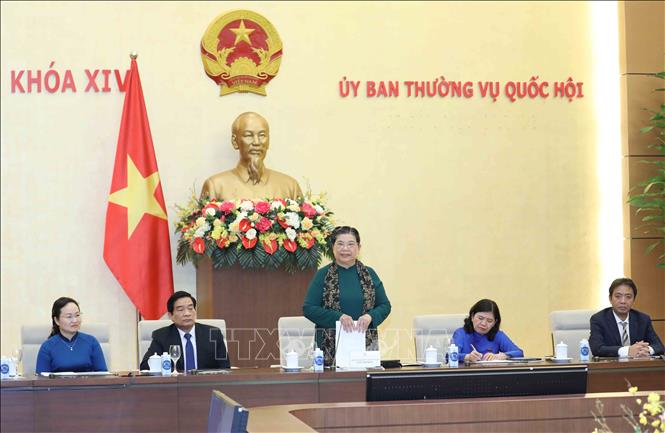| Phó Chủ tịch Thường trực Quốc hội Tòng Thị Phóng phát biểu tại buổi gặp mặt. Ảnh: Phương Hoa - TTXVN |