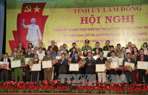 Qua 5 năm thực hiện Chỉ thị 03, tỉnh Lâm Đồng đã có 2.368 tập thể, cá nhân điển hình tiên tiến trong học tập và làm theo tấm gương đạo đức Hồ Chí Minh được các địa phương, cơ quan, đơn vị biểu dương và nhân rộng. Các cấp ủy Đảng, chính quyền, địa phương, đơn vị trong tỉnh đã triển khai thực hiện Chỉ thị 03 nghiêm túc với hình thức phong phú, tạo sự chuyển biến tích cực về nhận thức, hành động của cán bộ, đảng viên và nhân dân, trở thành đợt sinh hoạt chính trị sâu rộng trong toàn tỉnh. Trong quá trình thực hiện Chỉ thị đã xuất hiện nhiều mô hình mới, cách làm hay như "Ngày thứ 7 vì dân", "Tổ dân phố 7 không", "Treo ảnh Bác tại hộ gia đình hội viên", “Cộng đồng dân cư tham gia xóa nhà tạm”… Cả 12 huyện, thành phố của tỉnh đã triển khai mô hình chào cờ thôn, tổ dân phố vào sáng thứ 2 hàng tuần.