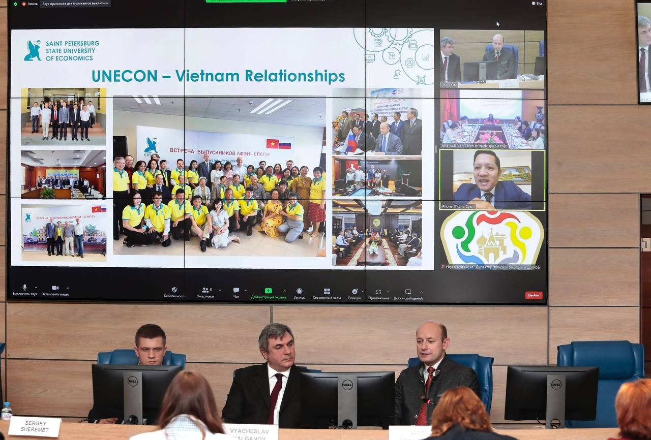 | Ông Vyacheslav Kalganov chủ trì hội đàm từ đầu cầu Saint-Petersburg. (Ảnh: thoidai.com.vn) |