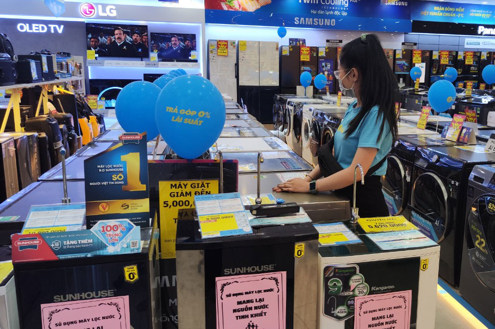 Đối với các siêu thị điện máy, điện thoại,... nhiều chương trình khuyến mại sau tết được tung ra với quy mô và chất lượng không thua kém trước tết. Nhiều sản phẩm giảm giá từ vài trăm ngàn đến 1 triệu đồng, kèm theo đó là quà tặng. Ghi nhận tại Điện Máy Xanh (xã Lạc Tấn, huyện Tân Trụ, tỉnh Long An) ngay từ ngày khai trương sau tết, siêu thị thực hiện nhiều chương trình khuyến mại nhằm kích cầu sức mua. Ngoài ra, để thu hút khách mua hàng, các siêu thị còn có những chương trình hỗ trợ như trả góp lãi suất 0%, hay trả trước 0 đồng, giảm giá khi đặt hàng online, lắp đặt miễn phí,...