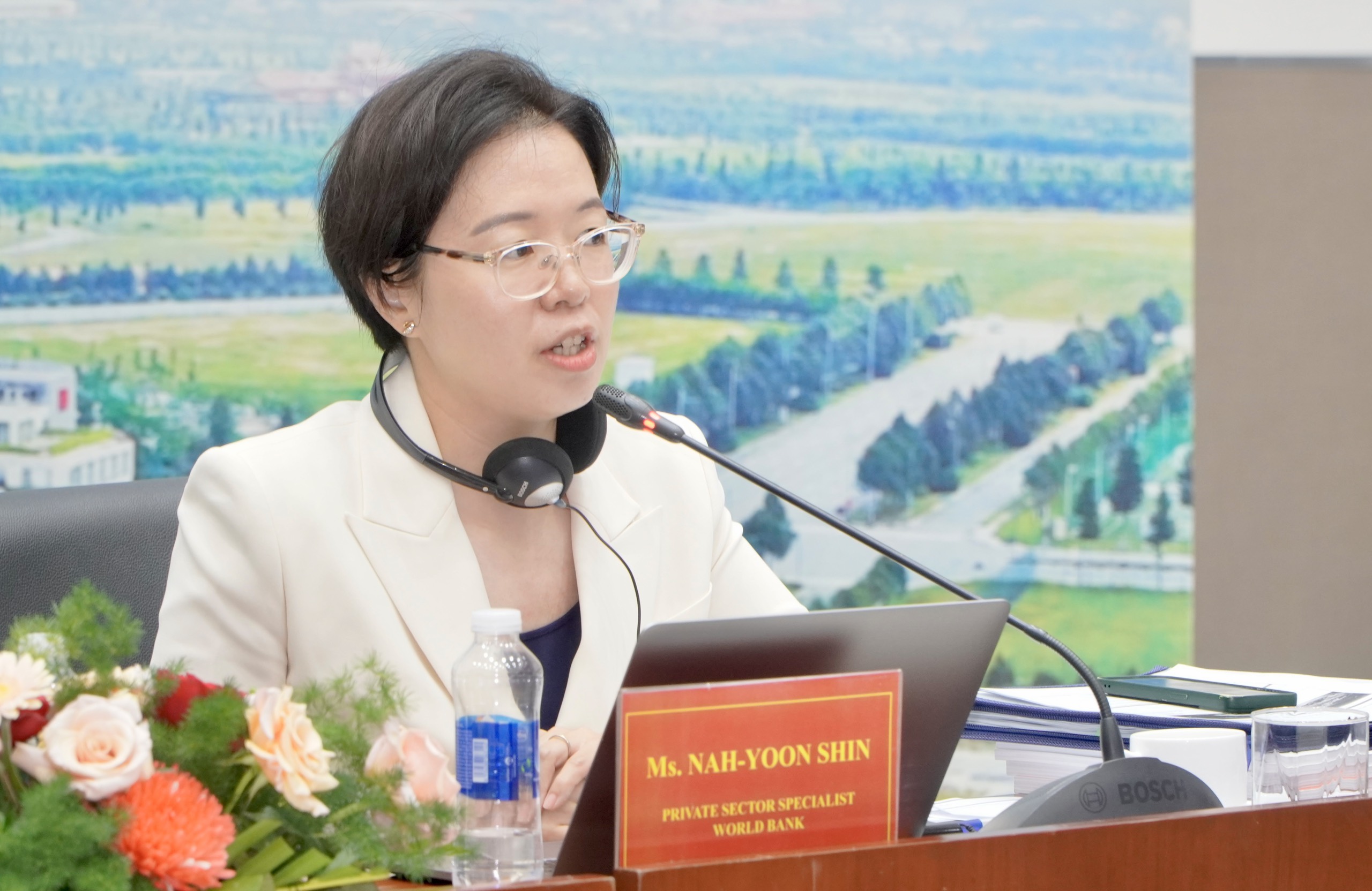 | Bà Nah Yoon Shin – Chuyên gia trong lĩnh vực tư nhân của Ngân hàng Thế giới chia sẻ tại Hội thảo |