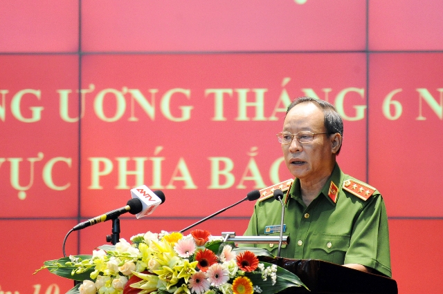 | Thượng tướng Lê Quý Vương, Ủy viên Trung ương Đảng, Phó bí thư Đảng ủy Công an Trung ương, Thứ trưởng Bộ Công an phát biểu khai mạc Hội nghị (Ảnh: K.T) |
