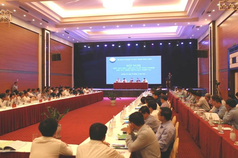 Thông tin tại Hội nghị cho biết, trong khoảng 2 tháng (từ giữa tháng 9 đến giữa tháng 11), bão, lũ xảy ra liên tiếp tại các tỉnh miền Trung. Thiên tai đã gây thiệt hại nghiêm trọng về người, tài sản. Trong đó, lĩnh vực sản xuất nông nghiệp bị tổn thương nghiêm trọng với 4.000ha lúa, 7.600ha hoa màu, 139.565 ha rừng, 12.672ha nuôi thủy sản bị thiệt hại; 38.500 con gia súc, 3.214.000 con gia cầm bị chết, cuốn trôi,… Thiệt hại kinh tế ước tính trên 30.000 tỷ đồng.