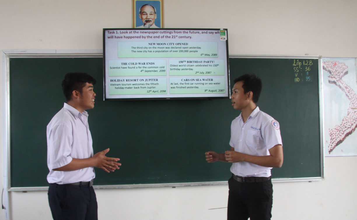 Học sinh thực hành kỹ năng nói trong tiết Tiếng Anh