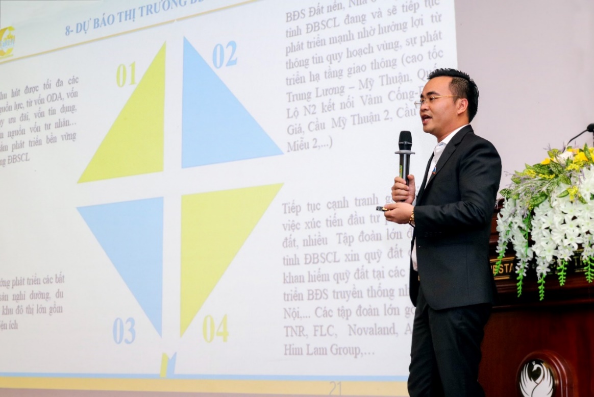 Ông Dương Quốc Thủy, Phó Chủ tịch Hiệp hội BĐS TP Cần Thơ trình bày về tình hình thị trường BĐS ĐBSCL vào quý 3 và xu hướng BĐS trong năm 2020.