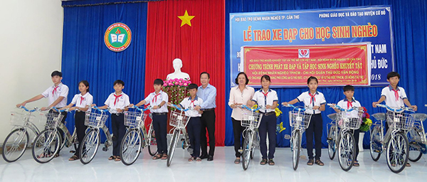 Một buổi lễ trao xe đạp cho học sinh nghèo huyện Cờ Đỏ. Ảnh: Ng.Ngân