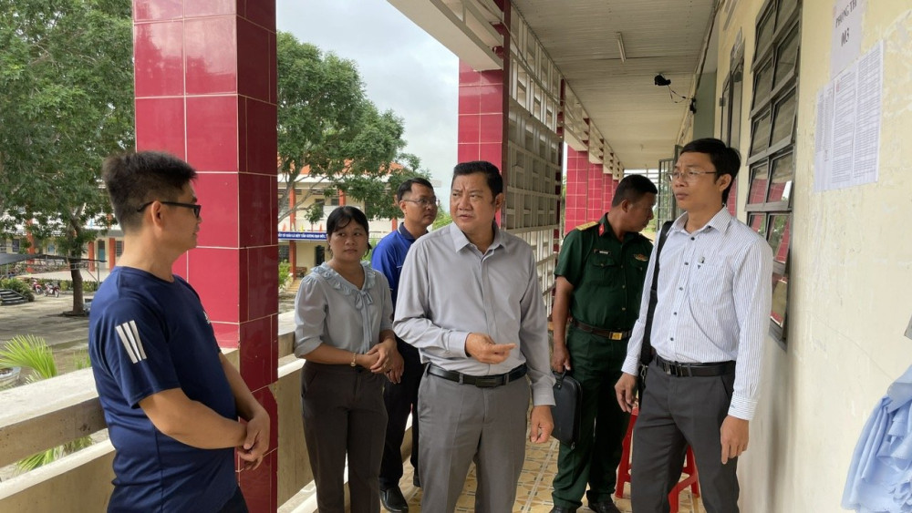 Phó Chủ tịch UBND huyện, Trưởng ban Chỉ đạo Kỳ thi tốt nghiệp THPT huyện Tân Hưng - Phan Hòa Nông kiểm tra công tác chuẩn bị cho Kỳ thi tốt nghiệp THPT năm 2024 tại Trường THPT Tân Hưng