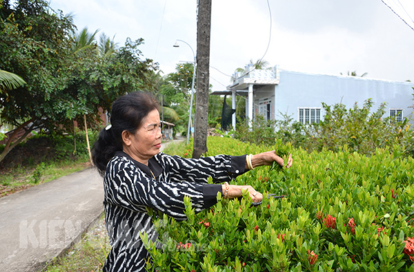 Người dân xã Ngọc Thuận, huyện Giồng Riềng tham gia phong trào làm hàng rào cây xanh góp phần xây dựng xã nông thôn mới nâng cao.