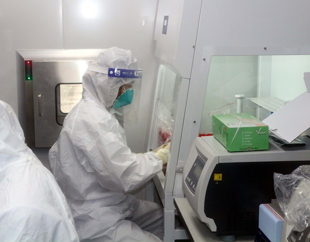 Các y, bác sỹ thực hiện xét nghiệm bằng kỹ thuật RT-PCR. (Ảnh: Đại Nghĩa/TTXVN)