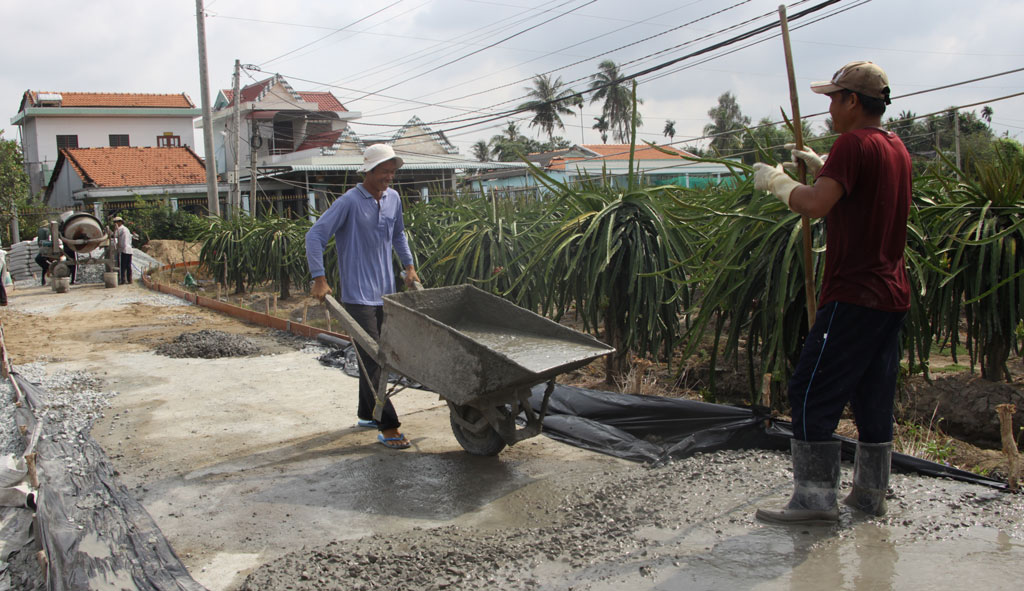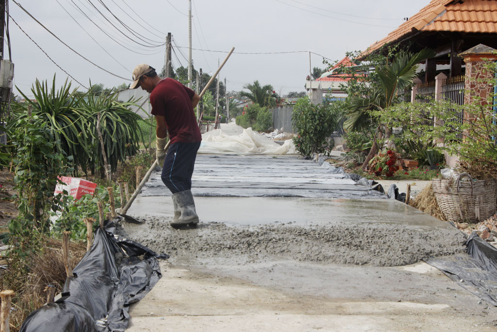 Tuyến đường ở ấp 4, xã Hòa Phú đang được nâng cấp, mở rộng nhờ sự đồng thuận của người dân