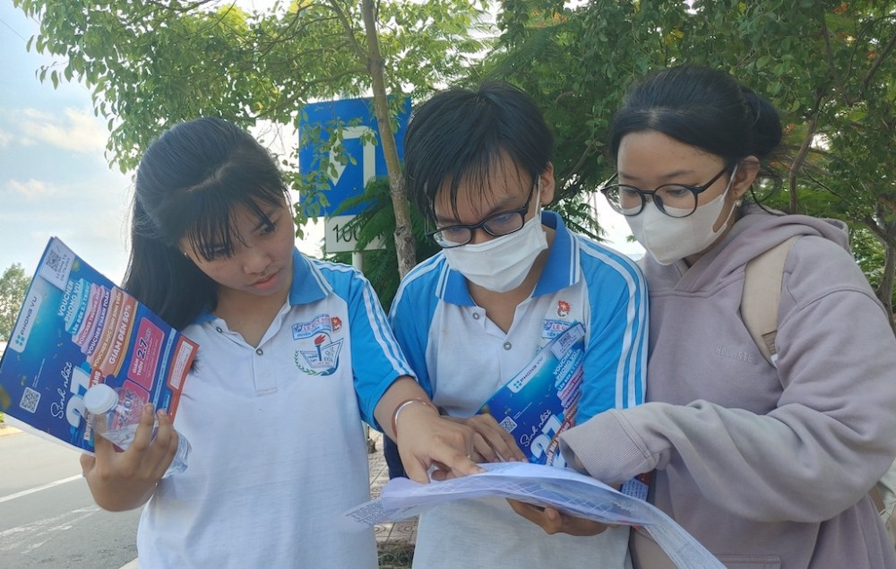Thí sinh thảo luận đề thi môn Tiếng Anh